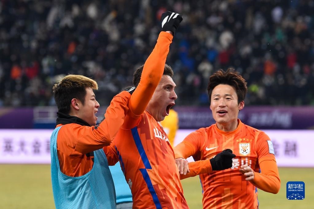 1月15日,山東泰山隊(duì)在頒獎儀式上慶祝。