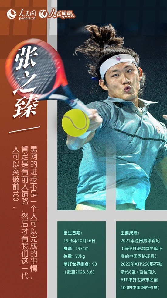 2021賽季,張之臻通過資格賽闖入溫網(wǎng)男單正賽,成為公開賽年代以來首位打進(jìn)溫網(wǎng)男單正賽的中國網(wǎng)協(xié)球員。2022年,在ATP250那不勒斯站上,從資格賽打起的張之臻最終晉級(jí)8強(qiáng),當(dāng)期世界排名升至第97位,成為首位排名世界前100名的中國網(wǎng)協(xié)男球員。