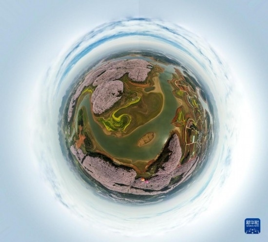 3月21日拍攝的貴州省貴安新區(qū)櫻花園(無人機照片)。