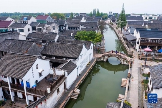4月11日拍攝的織里鎮(zhèn)義皋村古村落景區(qū)(無人機照片)。