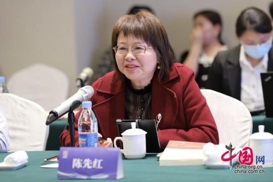 華中科技大學(xué)中國故事創(chuàng)意傳播研究院院長陳先紅作主題演講。中國網(wǎng) 夢恬 攝