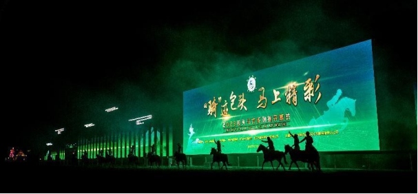 開幕式文體表演由《馬術(shù)方陣一馬當(dāng)先》、歌伴舞《我的城我的馬》、《名馬展示策馬揚(yáng)鞭》、《單馬技巧雙翼神馬》、《馬障礙秀躍馬揚(yáng)鞭》、《馬術(shù)秀人馬合一》、歌伴舞《騎跡包頭》、《無人機(jī)秀馬上精彩》八塊內(nèi)容組成。當(dāng)晚的賽汗塔拉馬術(shù)賽場(chǎng)流光溢彩、氣氛熱烈,場(chǎng)內(nèi)座無虛席、歡聲雷動(dòng)。20時(shí)30分許,主騎手手持國旗,副騎手手持馬城旗幟,運(yùn)動(dòng)員方陣、民族方陣、女騎方陣、馬主方陣入場(chǎng),騎手們精神飽滿、英姿颯爽,不時(shí)揮手致意,現(xiàn)場(chǎng)觀眾用熱烈的掌聲和歡呼聲,歡迎他們的到來。達(dá)茂旗9歲賽馬冠軍阿茹樂手持彩旗引出世界名馬亮相,40對(duì)人馬合一的“千古馬頌”表演震撼全場(chǎng),1000架無人機(jī)躍然天空,點(diǎn)亮“騎跡包頭 馬上精彩”的字樣……藍(lán)天、碧水、凈土的包頭在策馬奔騰的馬術(shù)競(jìng)技中拉開了“中國馬城”的壯麗畫卷。