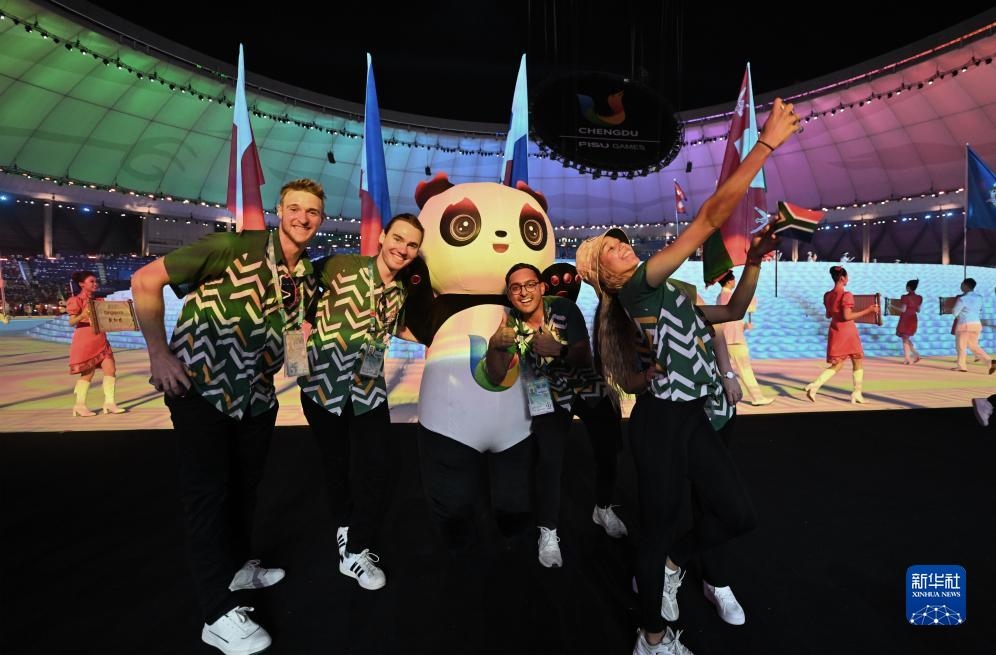 7月28日,南非大學(xué)生體育代表團(tuán)在開(kāi)幕式上入場(chǎng)。