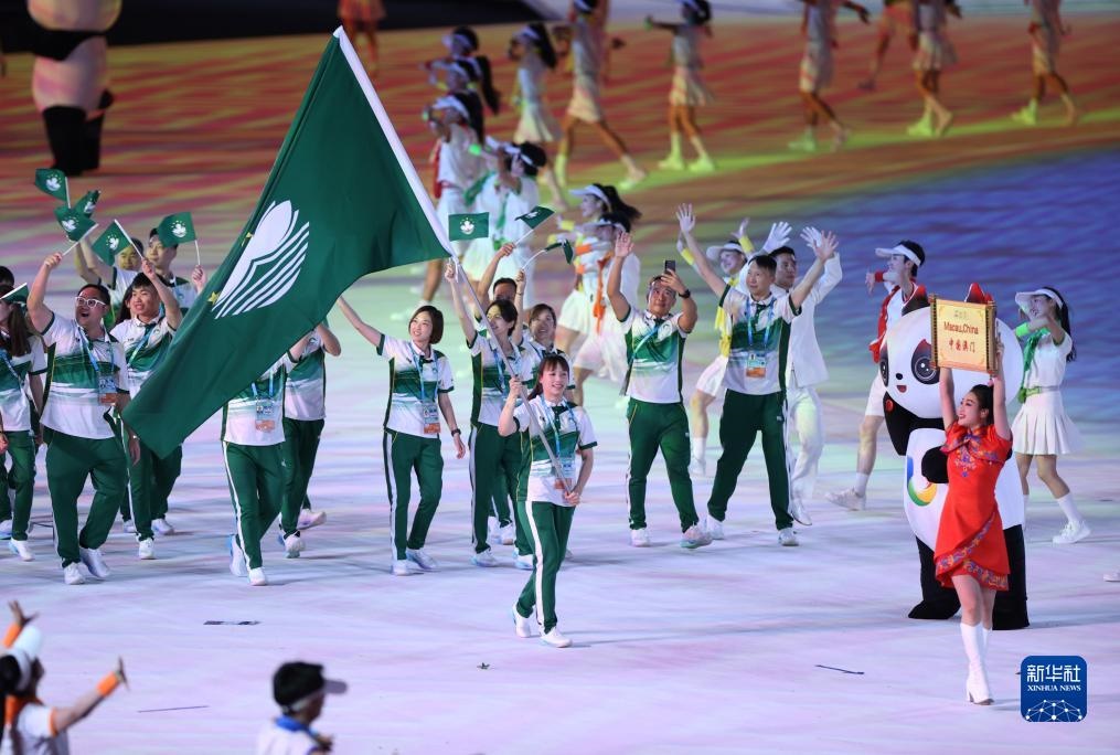 7月28日,中國(guó)澳門(mén)大學(xué)生體育代表團(tuán)在開(kāi)幕式上入場(chǎng)。