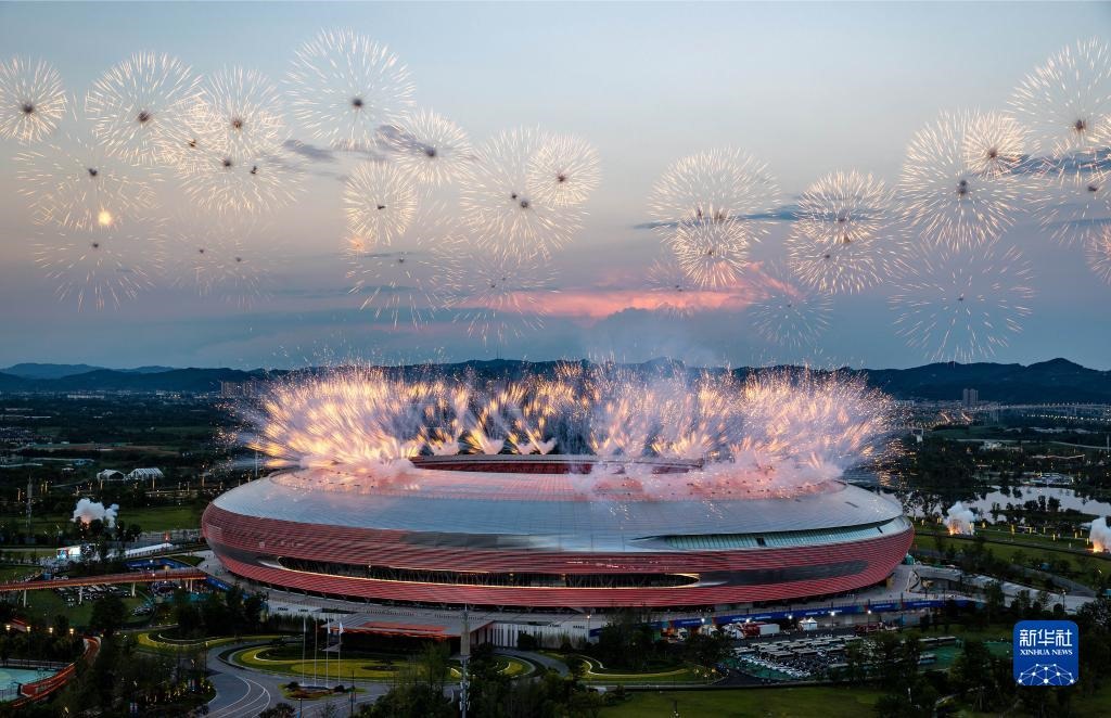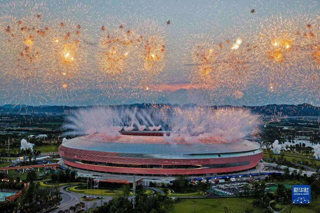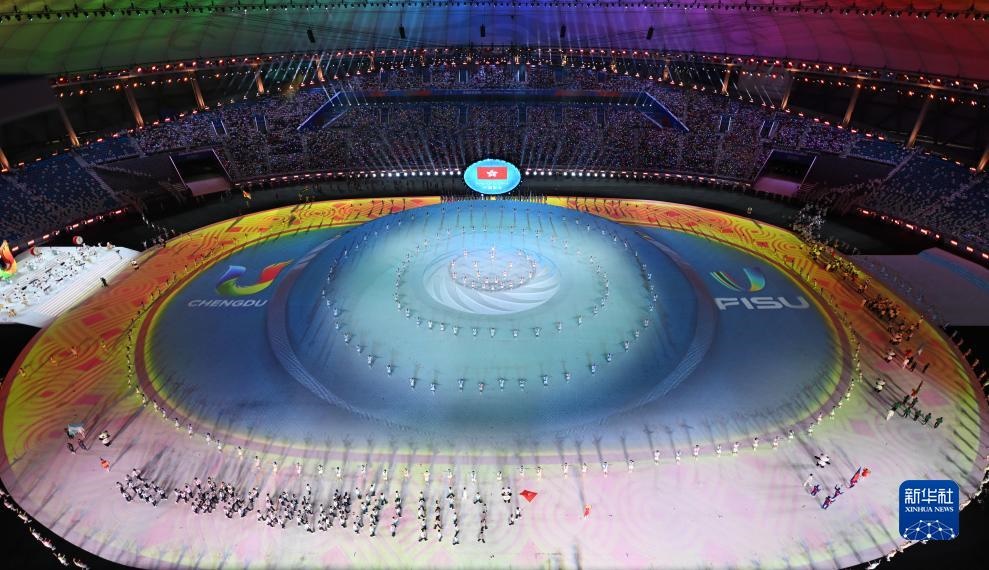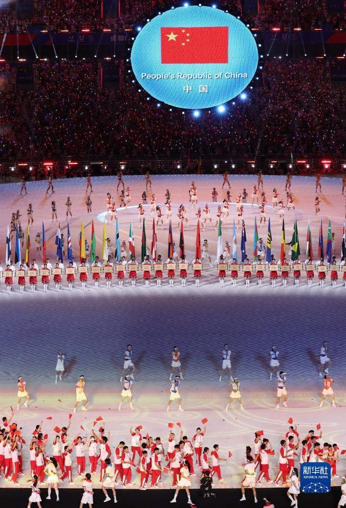 當(dāng)晚,第31屆世界大學(xué)生夏季運(yùn)動(dòng)會(huì)開(kāi)幕式在成都東安湖體育公園主體育場(chǎng)舉行。