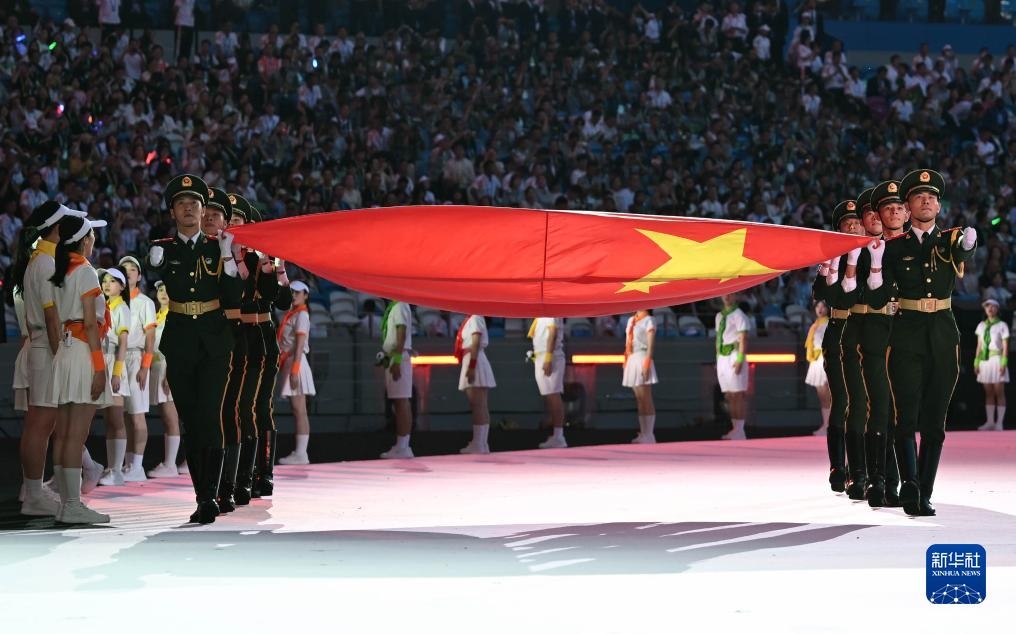 7月28日,中華人民共和國(guó)國(guó)旗入場(chǎng)。