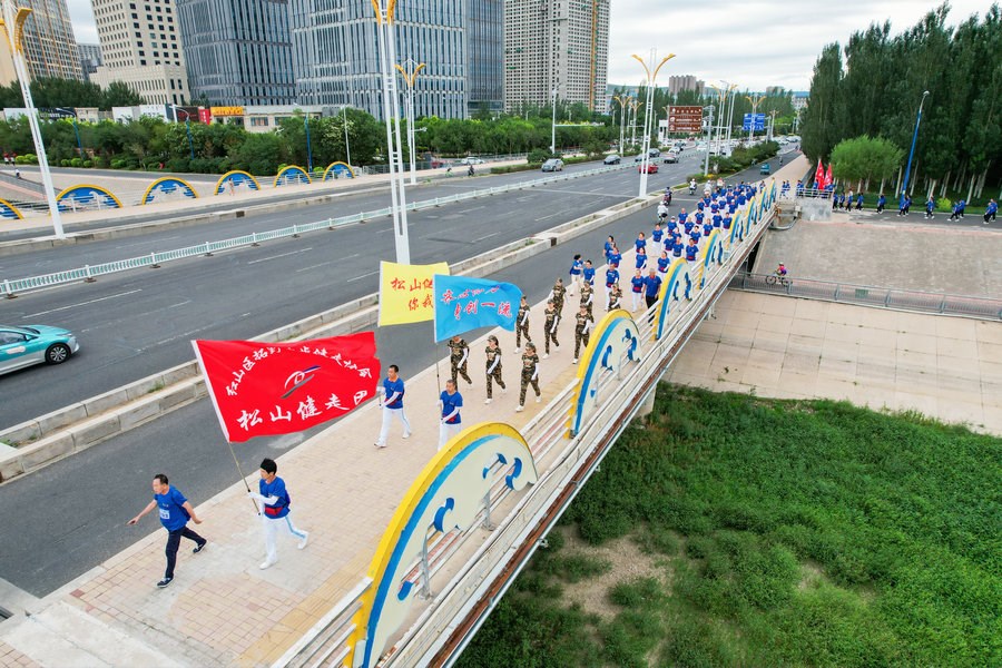 ??8月5日,“我愛天之藍(lán)·健康草原行”第二屆內(nèi)蒙古城市公益跑赤峰站活動在赤峰市紅山區(qū)錫伯河健身廣場舉行。