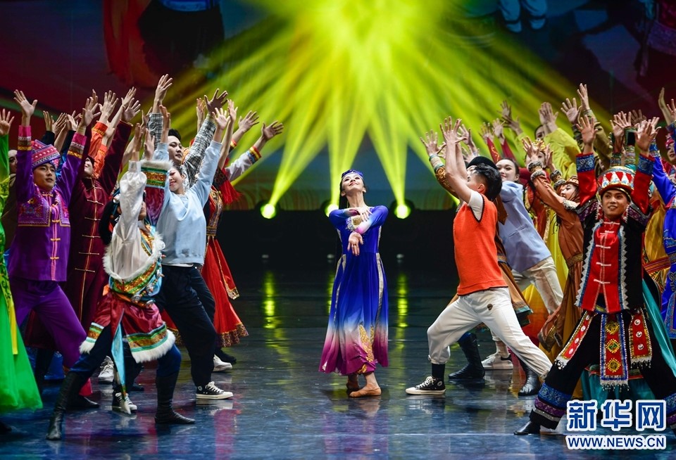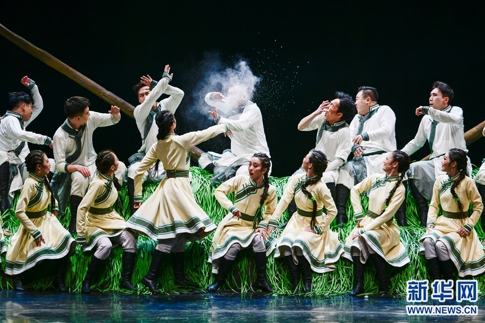 1月12日,演員在2022年內(nèi)蒙古新年舞蹈晚會中表演舞蹈《各族兒女行進(jìn)在陽光里》。新華網(wǎng)發(fā)(王正攝)