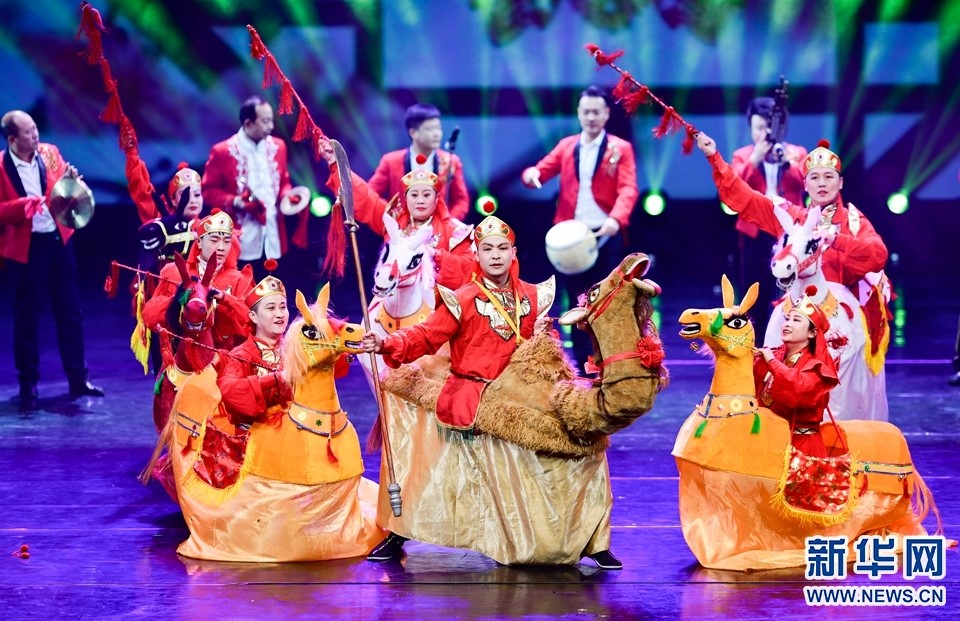 1月12日,演員在2022年內(nèi)蒙古新年舞蹈晚會中表演民間社火《雙墻秧歌》。新華網(wǎng)發(fā)(王正攝)