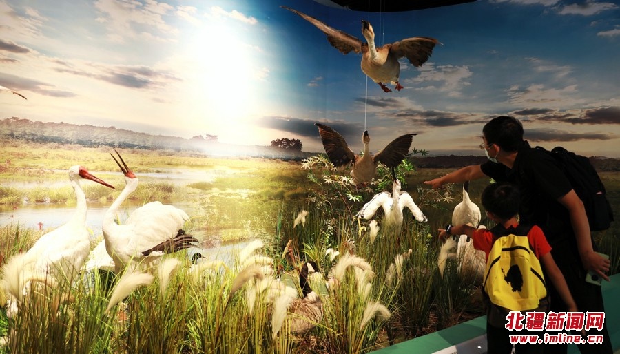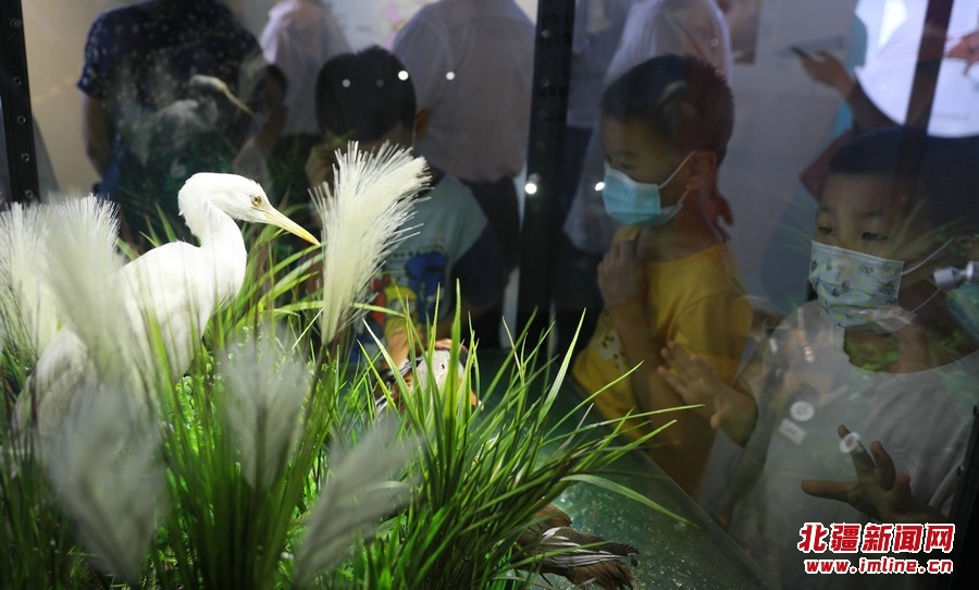 8月13日,參觀者在《振翅北疆》內(nèi)蒙古鳥類特展觀展