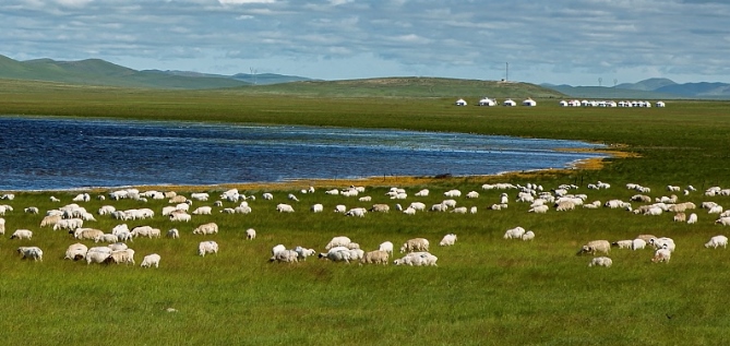 這兒,陰山橫亙?cè)诎蛷┠谞柺兄胁?,南部為河套平原,北部為烏拉特草原?/p>