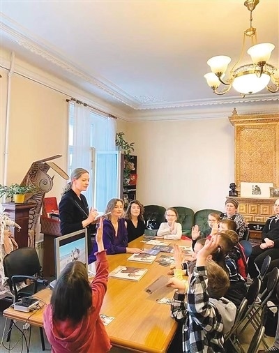 今年4月,在俄羅斯圣彼得堡兒童圖書中心,一群俄羅斯小朋友圍坐在一起目不轉(zhuǎn)睛地盯著電腦屏幕。畫面中,中國作家黑鶴身在大草原,被駿馬、牧羊犬環(huán)繞,將《鄂溫克的駝鹿》的創(chuàng)作故事與生活經(jīng)歷娓娓道來。天真活潑的孩子們紛紛舉手,提出了一個(gè)個(gè)充滿童趣的問題:筆名黑鶴是什么意思?鄂溫克人的帳篷什么樣?蚊煙是干什么用的?駝鹿能長多高?
