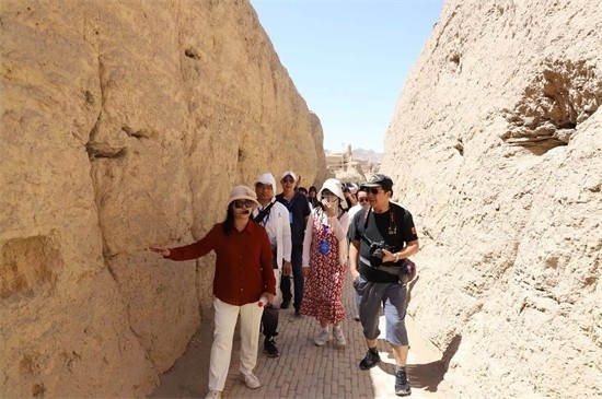 海外華文媒體采訪團(tuán)一行沿著習(xí)近平總書記的的足跡深入葡萄溝、交河故城等地采訪考察,了解當(dāng)?shù)匕l(fā)展葡萄特色產(chǎn)業(yè)、促進(jìn)文旅融合發(fā)展以及文化遺產(chǎn)保護(hù)利用等情況。
