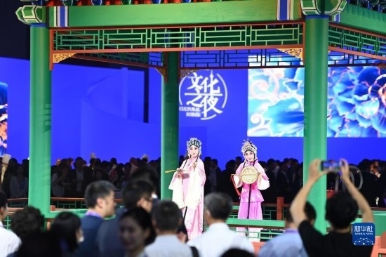 當(dāng)晚,第十四屆夏季達(dá)沃斯論壇文化之夜在天津梅江會展中心舉行。與會嘉賓伴隨著文藝演出,品嘗天津特色美食,體驗(yàn)中國傳統(tǒng)文化。新華社記者 趙子碩 攝