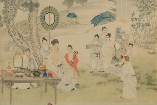 清·郎世寧《弘歷觀畫圖》軸(局部),展現(xiàn)出乾隆對(duì)古玩字畫的熱愛。(圖片來(lái)源:故宮博物院)