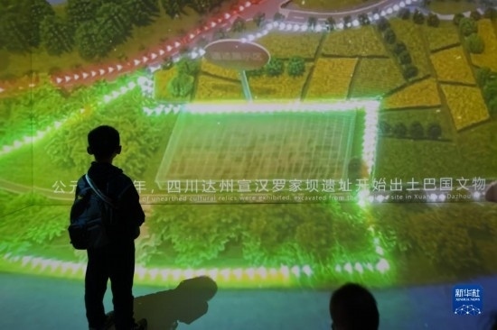 10月19日,在2023成都世界科幻大會(huì)主題展覽上,參觀者觀看宣漢羅家壩遺址視頻投影。