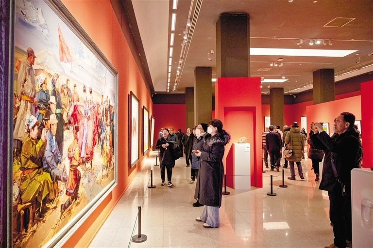 12月30日,元旦假期第一天,中國美術(shù)館內(nèi)“蒙古馬精神——內(nèi)蒙古美術(shù)攝影作品展”前來觀展的觀眾絡(luò)繹不絕。展出的130多件藝術(shù)作品生動反映了內(nèi)蒙古各族人民牢記囑托、感恩奮進(jìn),努力完成習(xí)近平總書記交給內(nèi)蒙古的五大任務(wù)和全方位建設(shè)模范自治區(qū)的火熱實踐,全面展示了內(nèi)蒙古壯美和美善美、可信可親可愛的新時代形象。