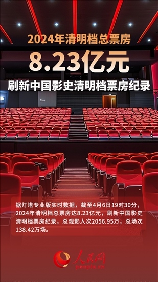 據(jù)燈塔專業(yè)版實時數(shù)據(jù),截至4月6日19時30分,2024年清明檔總票房達8.23億元,刷新中國影史清明檔票房紀錄,總觀影人次2056.95萬,總場次138.42萬場。