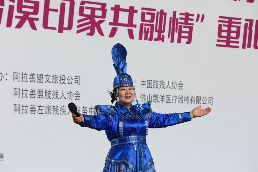 北疆新聞巴彥浩特10月11日電(記者 張楊)10月10日—11日,第三屆“沙漠印象”(2024)輪椅挑戰(zhàn)者大會(huì)暨首屆“愛老助殘 沙漠印象共融情”重陽(yáng)節(jié)活動(dòng),在內(nèi)蒙古阿拉善夢(mèng)想沙漠公園燃情開幕。著名女中音歌唱家索倫嘎傾情助力,在開幕式和頒獎(jiǎng)儀式上,分別演唱了《蒙古馬》和《守望相助》,受到現(xiàn)場(chǎng)觀眾的熱情掌聲。