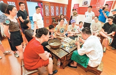 在東城區(qū)傳統(tǒng)韻味體驗(yàn)之旅中,游客在吉祥大戲院國(guó)粹京劇體驗(yàn)基地可以穿戴上京劇服裝道具,體驗(yàn)戲曲演員化妝過(guò)程,品嘗戲曲主題“吉祥咖啡”,觀看經(jīng)典京劇演出,與名師名家互動(dòng),零距離感受國(guó)粹經(jīng)典的魅力;在廣譽(yù)遠(yuǎn)中醫(yī)藥文化體驗(yàn)基地,游客通過(guò)聽(tīng)中醫(yī)講解、辨藥材識(shí)優(yōu)劣、手工制作香囊等多種體驗(yàn)方式,感受中醫(yī)藥文化。在和平菓局京味文化體驗(yàn)基地,游客可以走進(jìn)煤廠胡同、小覺(jué)寺等老北京場(chǎng)景,體驗(yàn)拉洋片、草編藝術(shù)、皮影、捏面人等傳統(tǒng)京味文化。