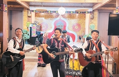 在云南省瀾滄拉祜族自治縣,拉祜族房東扎努的民宿在國慶節(jié)假期迎來滿房。今年4月,扎努改造自家老房子,把民族音樂與民宿相結(jié)合,開了一家音樂民宿——拉祜音宿?!袄镒迨悄芨枭莆璧拿褡濉N蚁矚g與人交流,喜歡鄉(xiāng)村風(fēng)光和家鄉(xiāng)氣候,所以選擇回鄉(xiāng)開民宿?!弊鳛榉繓|,扎努常常帶游客一起唱歌跳舞,表演他創(chuàng)作的《我在瀾滄等你》《快樂拉祜》等歌曲,并向他們介紹拉祜族的民族歷史和文化。