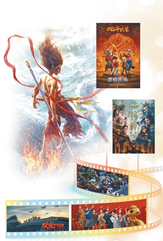 今年春節(jié)檔影片題材多元、類型豐富、市場關(guān)注度高?!斗馍竦诙浚簯?zhàn)火西岐》續(xù)寫前作暗線伏筆,展現(xiàn)人物的成長軌跡和戰(zhàn)爭場面;《哪吒之魔童鬧?!分v述哪吒鬧海故事,延續(xù)“超級喜劇、超燃視效”風格;《唐探1900》保留類型風格的同時,在內(nèi)容創(chuàng)新和制作規(guī)模上升級;《蛟龍行動》作為我國第一部核潛艇電影,在水下呈現(xiàn)廣闊戰(zhàn)場與復(fù)雜戰(zhàn)況;《熊出沒·重啟未來》是《熊出沒》科幻五部曲的最終章,用“極致的浪漫、大膽的想象”呈現(xiàn)一場冒險;《射雕英雄傳:俠之大者》改編自金庸經(jīng)典武俠小說,呈現(xiàn)了“俠之大者,為國為民”。
