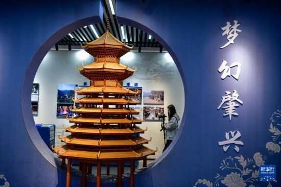 3月18日,游客在貴州省黎平縣肇興侗寨里的侗族文化展示中心拍攝。