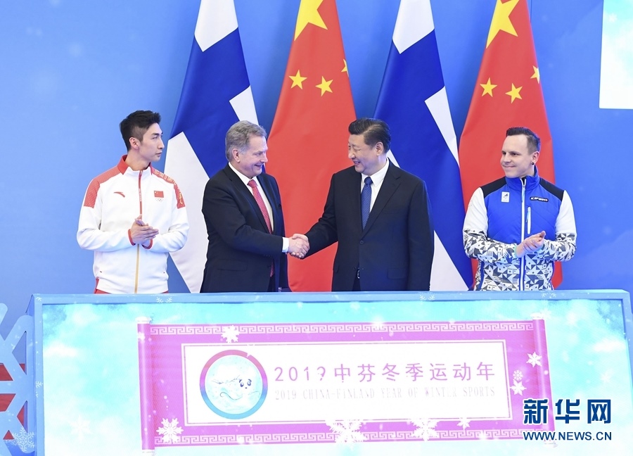 簽字儀式后,習(xí)近平同尼尼斯托共同出席了“2019中芬冬季運(yùn)動(dòng)年”啟動(dòng)儀式。習(xí)近平在致辭中指出,新中國(guó)第一次走上奧運(yùn)賽場(chǎng)就是參加1952年芬蘭赫爾辛基奧運(yùn)會(huì),五星紅旗第一次在奧林匹克體育場(chǎng)上升起。中芬冬季運(yùn)動(dòng)發(fā)展契合度高、互補(bǔ)性強(qiáng),合作潛力巨大。相信“2019中芬冬季運(yùn)動(dòng)年”將推動(dòng)兩國(guó)體育合作邁上新臺(tái)階,共同為中芬人文交流注入新活力,不斷推動(dòng)中芬面向未來的新型合作伙伴關(guān)系邁上新臺(tái)階。尼尼斯托表示,中國(guó)已成為世界體育大國(guó)。芬中在體育領(lǐng)域結(jié)緣已久。芬蘭支持中國(guó)成功舉辦2022年冬奧會(huì),很高興成為第一個(gè)同中國(guó)開啟冬季運(yùn)動(dòng)年的國(guó)家,相信這將進(jìn)一步促進(jìn)兩國(guó)人民的友誼。中國(guó)正在向冬季運(yùn)動(dòng)強(qiáng)國(guó)邁進(jìn),芬蘭愿助一臂之力。