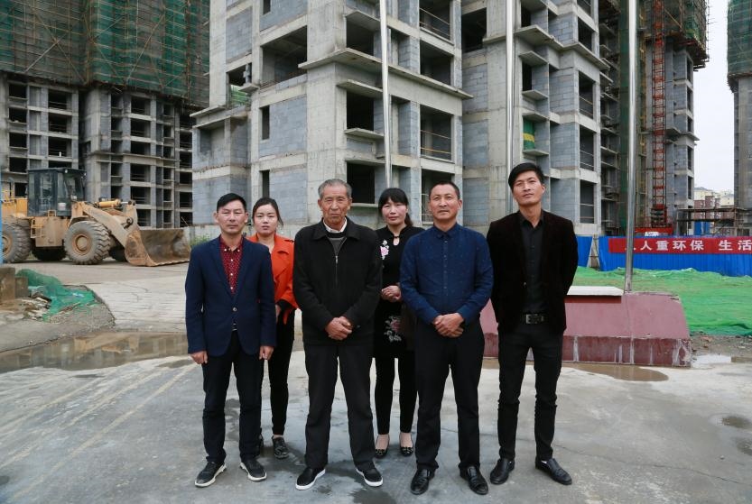 △這是晏傳忠(前排左二)一家在工地上的照片(合影時二兒子晏家勇不在場。照片由黃久生提供)