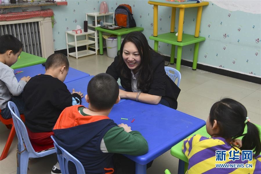 2月27日,在內蒙古赤峰市星之路自閉癥兒童康復中心,王欣會與自閉癥兒童交流。全國人大代表王欣會是內蒙古赤峰市星之路自閉癥兒童康復中心校長,多年來致力于為自閉癥兒童提供康復服務,努力幫助他們和同齡人一樣,進入普通幼兒園或小學就讀。王欣會呼吁社會各界給予自閉癥兒童更多關注,幫助他們融入社會生活。新華社記者鄒予攝
