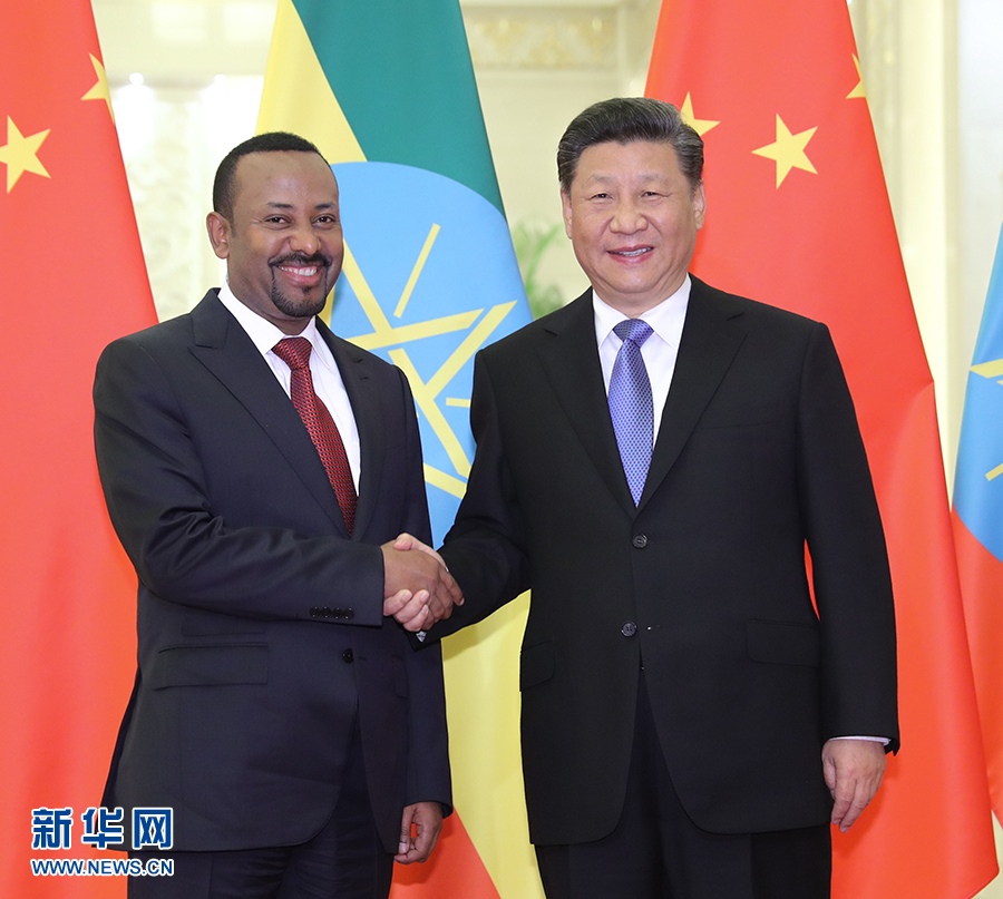 4月24日,國(guó)家主席習(xí)近平在北京人民大會(huì)堂會(huì)見(jiàn)埃塞俄比亞總理阿比。 新華社記者 丁林 攝