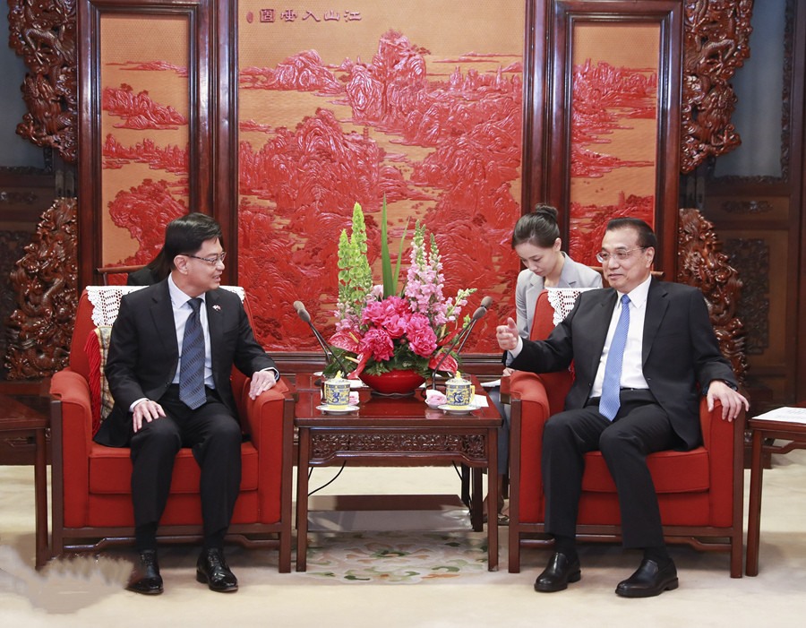 5月23日,國務(wù)院總理李克強(qiáng)在北京中南海紫光閣會(huì)見新加坡副總理兼財(cái)政部長王瑞杰。新華社記者 龐興雷 攝