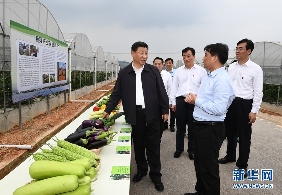 5月20日至22日,中共中央總書記、國家主席、中央軍委主席習近平在江西考察,主持召開推動中部地區(qū)崛起工作座談會并發(fā)表重要講話。這是習近平在贛州市于都縣梓山富硒蔬菜產(chǎn)業(yè)園考察調(diào)研。