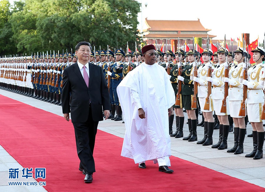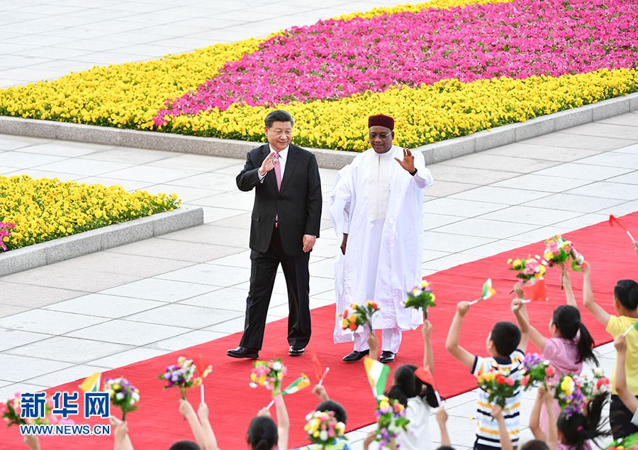 5月28日,國家主席習(xí)近平在北京人民大會(huì)堂同尼日爾總統(tǒng)伊素福舉行會(huì)談。這是會(huì)談前,習(xí)近平在人民大會(huì)堂東門外廣場為伊素福舉行歡迎儀式。