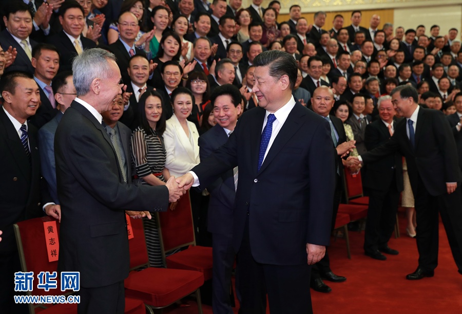 5月28日,黨和國家領(lǐng)導(dǎo)人習(xí)近平、汪洋等在北京人民大會堂會見第九屆世界華僑華人社團聯(lián)誼大會和中華海外聯(lián)誼會五屆一次理事大會全體代表。