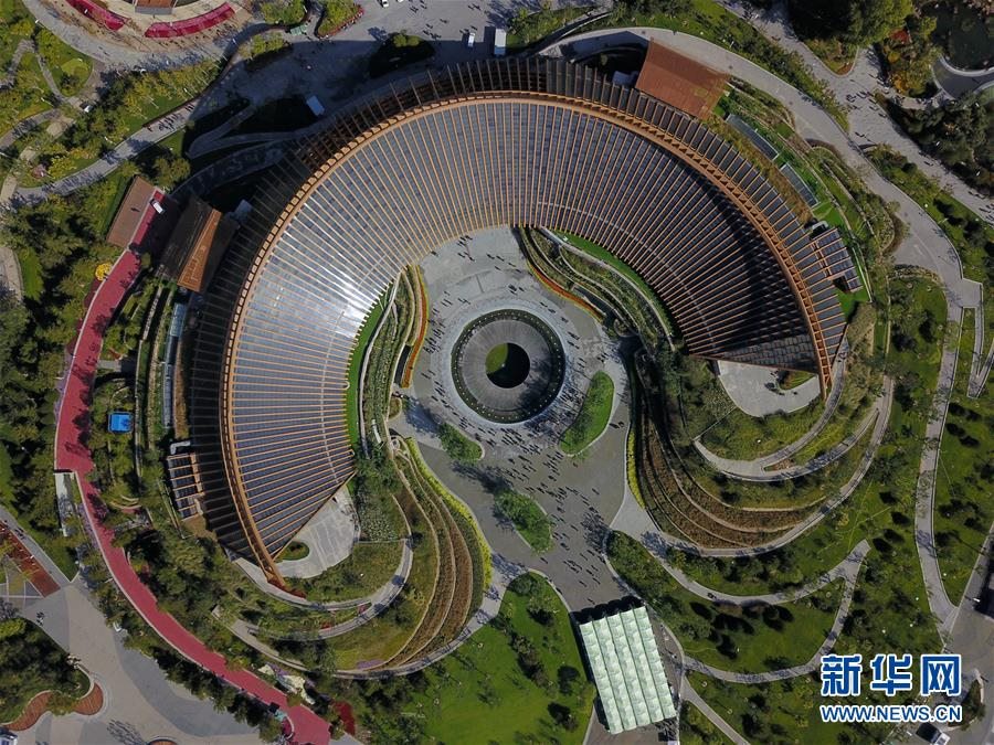 這是北京世園會(huì)中國(guó)館(10月7日無(wú)人機(jī)拍攝)。