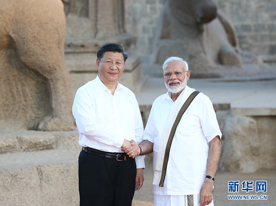莫迪在入口處迎接,對習(xí)近平來到金奈表示熱烈歡迎。習(xí)近平表示,去年我同總理先生在武漢成功舉行會晤,引領(lǐng)中印關(guān)系進(jìn)入新階段。我很高興應(yīng)你邀請來到印度南端的泰米爾納德邦,對印度的了解可以更進(jìn)一步。
