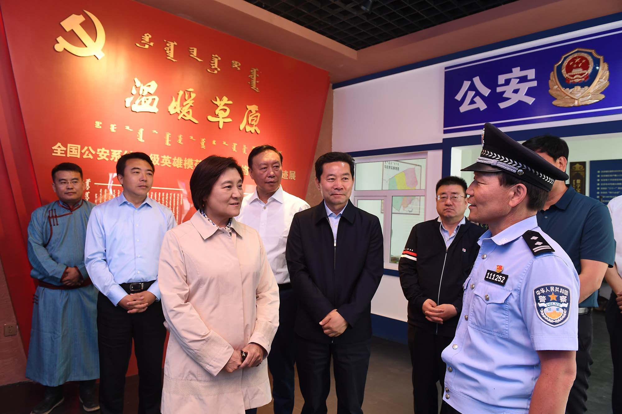 烏拉特后旗公安局潮格溫都爾鎮(zhèn)派出所民警寶音德力格爾被授予“全國公安系統(tǒng)一級英雄模范”榮譽(yù)稱號。布小林走進(jìn)寶音德力格爾事跡館參觀,與寶音德力格爾親切交談,對他舍小家顧大家、為人民群眾無私奉獻(xiàn)的精神給予充分肯定。