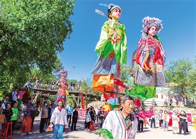 6月13日,民間藝人在內(nèi)蒙古2020年“文化和自然遺產(chǎn)日”非遺宣傳展示系列活動(dòng)開(kāi)幕式活動(dòng)現(xiàn)場(chǎng)表演國(guó)家級(jí)非物質(zhì)文化遺產(chǎn)“腦閣”。內(nèi)蒙古日?qǐng)?bào)社融媒體記者 王磊 攝