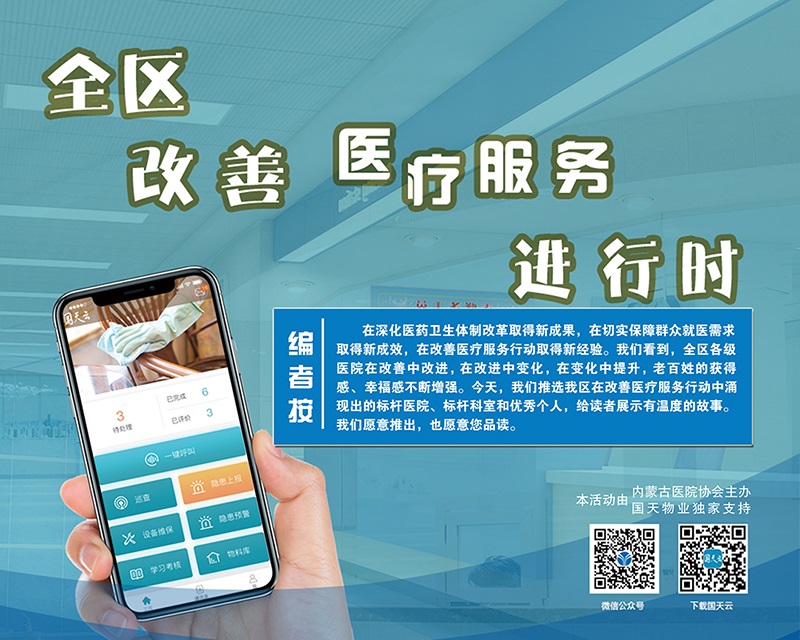 全面“改善醫(yī)療服務”是一項持久而具體的工程。赤峰學院附屬醫(yī)院將凝心聚力,構建優(yōu)質高效的醫(yī)療服務體系,不斷創(chuàng)新服務舉措,持續(xù)改善醫(yī)療服務重點工作,努力打造“群眾最滿意的醫(yī)院”。
