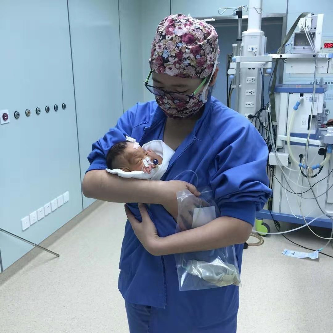 手術室醫(yī)生用自己的身體給小患者取暖