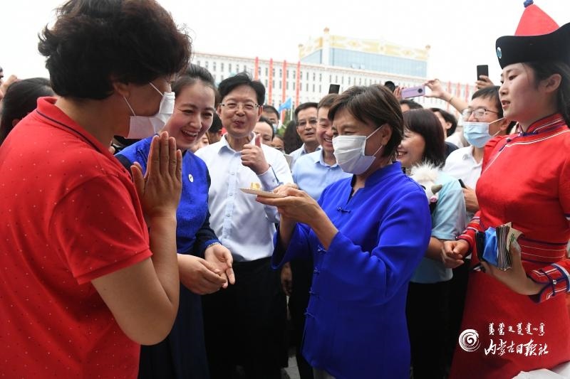 7月25日,自治區(qū)黨委副書記、自治區(qū)主席布小林在調(diào)研2020年內(nèi)蒙古自治區(qū)民族手工藝和文創(chuàng)旅游精品展示活動(dòng)時(shí)來到內(nèi)蒙古味道展示區(qū)。內(nèi)蒙古日報(bào)社融媒體記者 韓卿立 攝