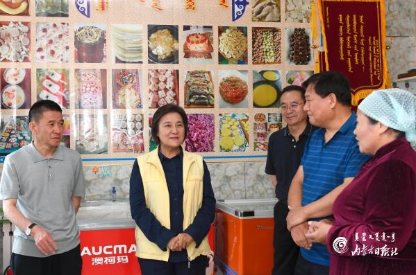 我區(qū)民族特色奶制品具有很大的發(fā)展?jié)摿ΑT谛掳蜖柣⒆笃炷热仕_其爾巴爾虎奶食品加工基地,布小林考察產(chǎn)品種類、工藝流程、安全檢測、包裝銷售等方面的情況。得知基地被認(rèn)定為奶制品技藝培訓(xùn)教室和扶貧車間、主要安置建檔立卡貧困戶就業(yè)時(shí),她對此給予肯定,鼓勵(lì)基地進(jìn)一步發(fā)揮引領(lǐng)帶動(dòng)作用,積極探索特色化、標(biāo)準(zhǔn)化、品牌化發(fā)展路子,幫助更多貧困群眾增收致富。