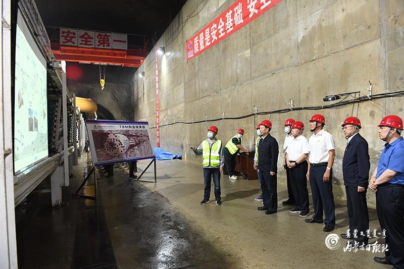 8月12日,自治區(qū)黨委書記、人大常委會主任石泰峰來到興安盟科右前旗察爾森鎮(zhèn)引綽濟遼2號隧洞輸水管線建設(shè)現(xiàn)場,了解工程進展情況。內(nèi)蒙古日報記者 袁永紅 攝