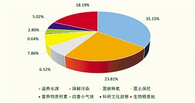 內(nèi)蒙古森工集團2018年森林生態(tài)系統(tǒng)服務功能價值比例。