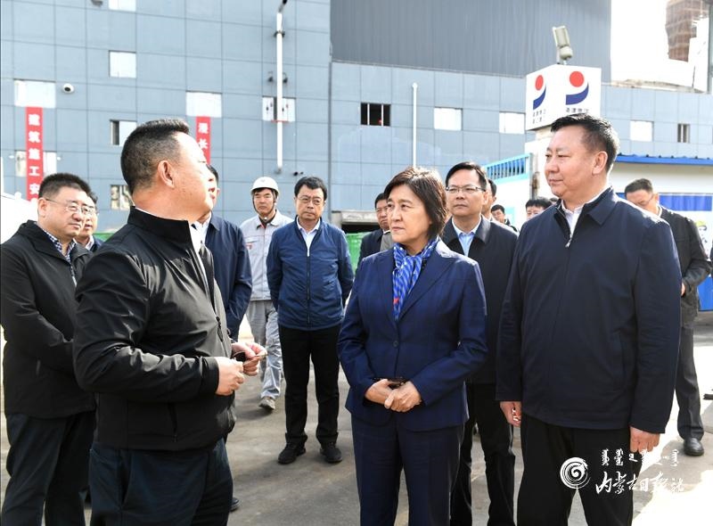 10月11日,自治區(qū)黨委副書記、自治區(qū)主席布小林來到烏海市烏達(dá)區(qū)內(nèi)蒙古興發(fā)科技有限公司有機(jī)硅新材料一體化循環(huán)項目現(xiàn)場,深入了解企業(yè)技術(shù)路線、環(huán)保裝置等方面情況。內(nèi)蒙古日報記者 韓卿立 攝