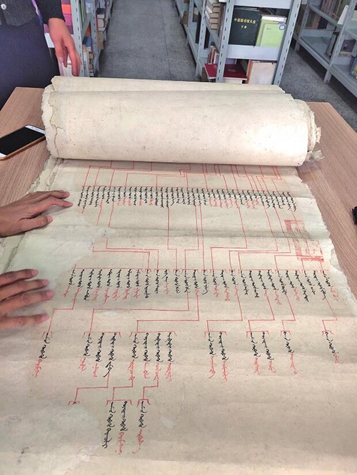 內(nèi)蒙古社會(huì)科學(xué)院圖書館館長(zhǎng)王智說(shuō):“這里的寶貝有很多,經(jīng)書、圣旨、家譜,種類豐富且保存較為完整。館內(nèi)現(xiàn)有藏書26萬(wàn)冊(cè),包括漢文、蒙古文、滿文、外文等各類圖書。其中,蒙古文古籍6280種3萬(wàn)余冊(cè),約占全國(guó)各圖書館蒙古文古籍收藏種類的50%,且多為木刻原版或手抄本。單是這一個(gè)數(shù)字,就是其它圖書館無(wú)法匹及的?!?/p>
