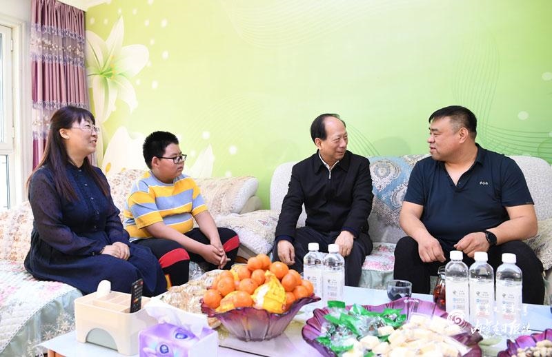 1月6日,自治區(qū)黨委書記、人大常委會(huì)主任石泰峰來到呼倫貝爾市海拉爾區(qū)神寶小區(qū),慰問自治區(qū)勞動(dòng)模范于景斌。內(nèi)蒙古日?qǐng)?bào)社融媒體記者 袁永紅 攝
