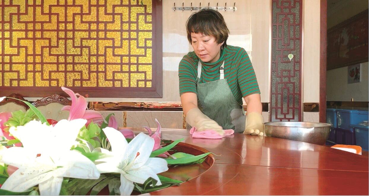 由俊麗正在打掃餐廳準(zhǔn)備迎接客人。 劉丹 攝