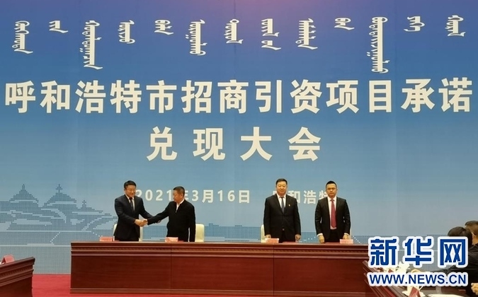 呼和浩特市招商引資項目承諾兌現(xiàn)大會現(xiàn)場。新華網(wǎng)發(fā)